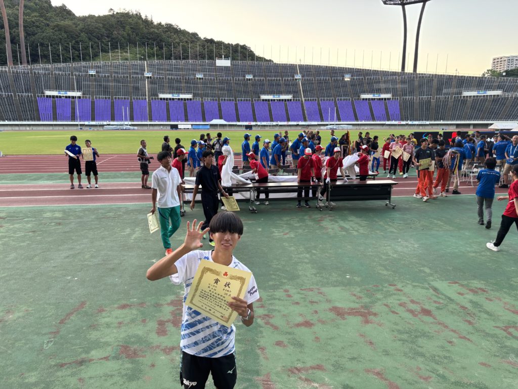 7月25日〜7月29日まで広島県のホットスタッフフィールド広島にて全国高校総体が行われました。今大会は直前に暑熱対策による競技ルールの変更が多くありました。トラック競技は準決勝を取りやめタイムレース決勝となり、フィールド競技は2回の試技のみとなり、競技日程も大幅に変更されました。そんな中での試合でしたが選手全員がしっかりと対応し、全力で挑むことができたと思います。